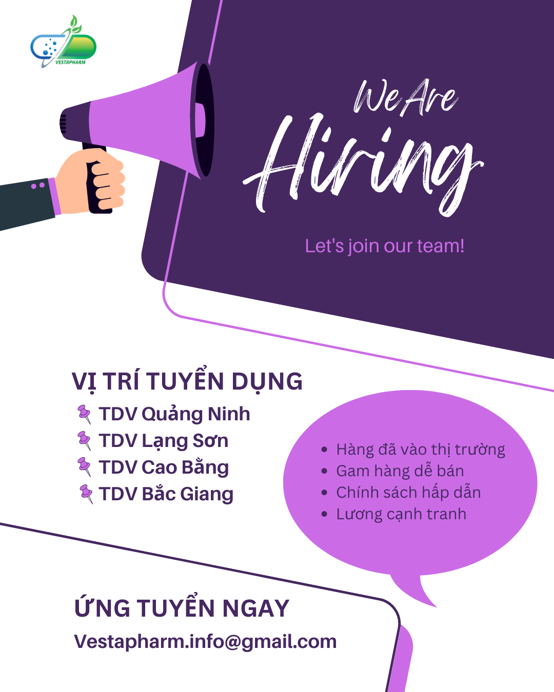 DƯỢC PHẨM VESTAPHARM TUYỂN DỤNG TRÌNH DƯỢC VIÊN MIỀN BẮC