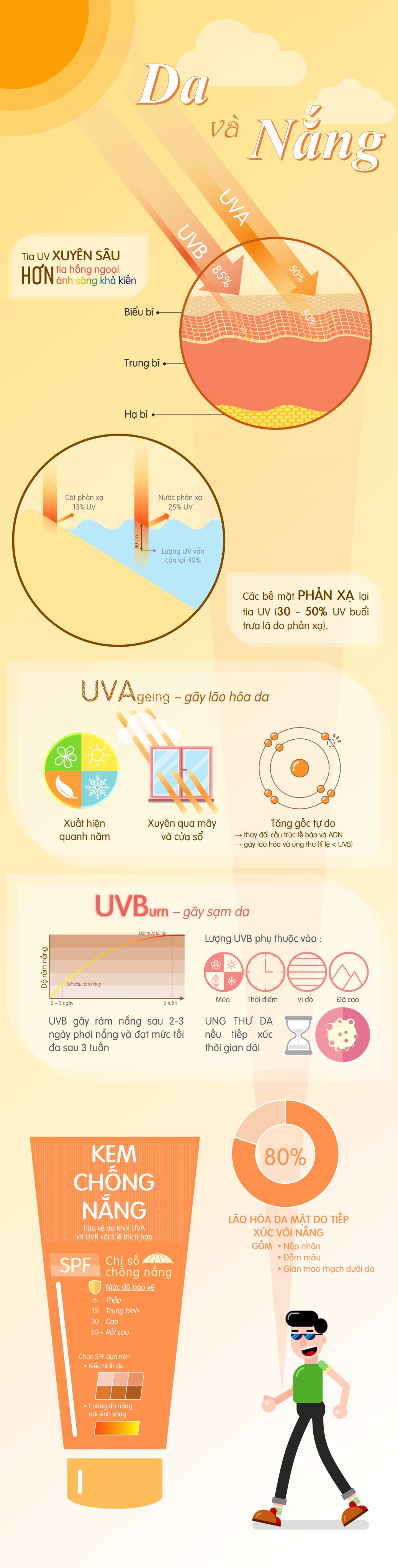 Tia UV bao gồm UVA, UVB và UVC, trong đó tia UVC đã được hấp thụ hoàn toàn bởi tầng ozon khi đến Trái Đất. Còn UVA và UVB là thành phần gây tổn thương da trong ánh nắng mặt trời.